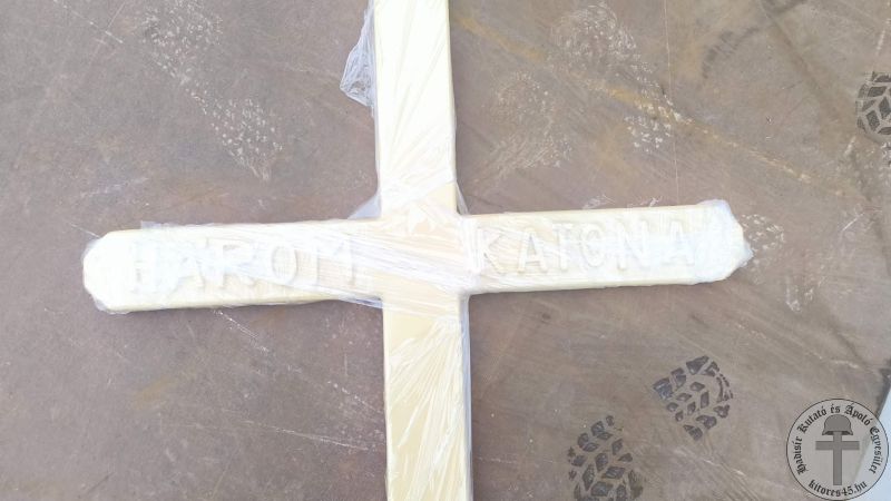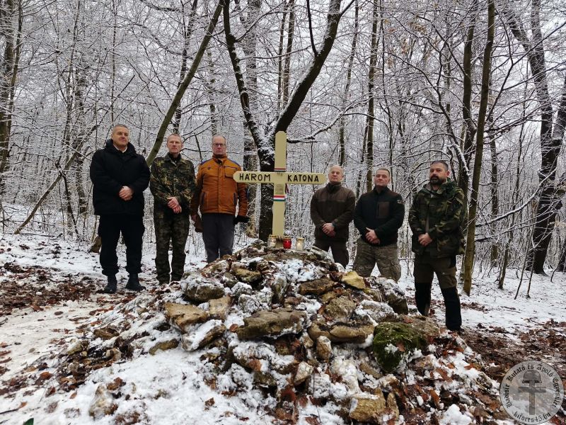 A helyreállítási szándékunkat előre jeleztük a Pilisi Parkerdő Zrt. illetékeseinek, illetve a Hegyvidéki Önkormányzatnak. Február elsején Alkay Zsolt, Beke Gábor, Polgár Zsolt, Szőnyi Gábor, Terman Béla egyesületi tagokkal, és egy orvos házaspárral már kora reggel találkoztunk a Normafánál, hogy nekikezdjünk a munkának, egy remekül összehangolt munkatervvel. Az erdei utak jegesek voltak, amelyre az éjszaka 5-10 centis hó esett, de szerencsére baleset nélkül értük el a megrongált sírhelyet. A fejfa részénél kiszedtük a köveket, alapoztunk, beállítottuk a keresztet, majd következett a fagyállós vízzel kevert beton beöntése. Ezt követte a három nyelvű kis táblák feltétele, majd a kereszt szintezése, beállítása, a felirat feketére festése. Természetesen, a szemetet összeszedtük (elhasznált, törött mécsesek), végül nemzeti szalaggal kötöttük át a sírkeresztet. Büszkén elmondhatjuk, hogy alig egy hét elteltével, a „Három katona” sírja újra áll, szebb, tartósabb lett, mint volt. Munkánkért köszönetet mondott a Hegyvidéki Önkormányzat:
