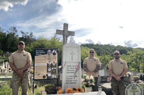 Feltüntettük nevük mellett a rendfokozatukat, továbbá az átjutásuknál rögzített jelentésből sebesüléseiket. Egy lelkes kutatónak köszönhetően, több eredeti fényképhez is hozzájutottunk, amely a kitörésben sikeresen átjutott tisztjeinkről készült, illetve amelyet a szovjetek készítettek a kitörés után. E kép- és szöveg anyag összeállítása után, a tábla állításunk tervét jóváhagyattuk Mány polgármesterével, egyeztettünk felállításának pontos helyéről, majd legyártattuk, végül a helyszínre szállítva felállítottuk. A feketére festett fémkeretre fel lett szegecselve az ismertetőtábla, a koszorúk elhelyezését pedig három fém kampó biztosítja. A szombati emléktúra előtt, már pénteken felállítottuk az elkészült emléktáblát a helyszínen, gondosan körbeszórva fehér murvával, hogy még szebb legyen. A táblát fehér lepedővel takartuk le, s nemzeti színű szalaggal kötöttük át, hogy méltó keretet biztosítsunk majd a kitörés emléktúra végén a felavatására. Az emléktúráról, amelynek végén az emlék- és ismertetőtábla avatása történt, korábbi cikkünkben már részletesen beszámoltunk.